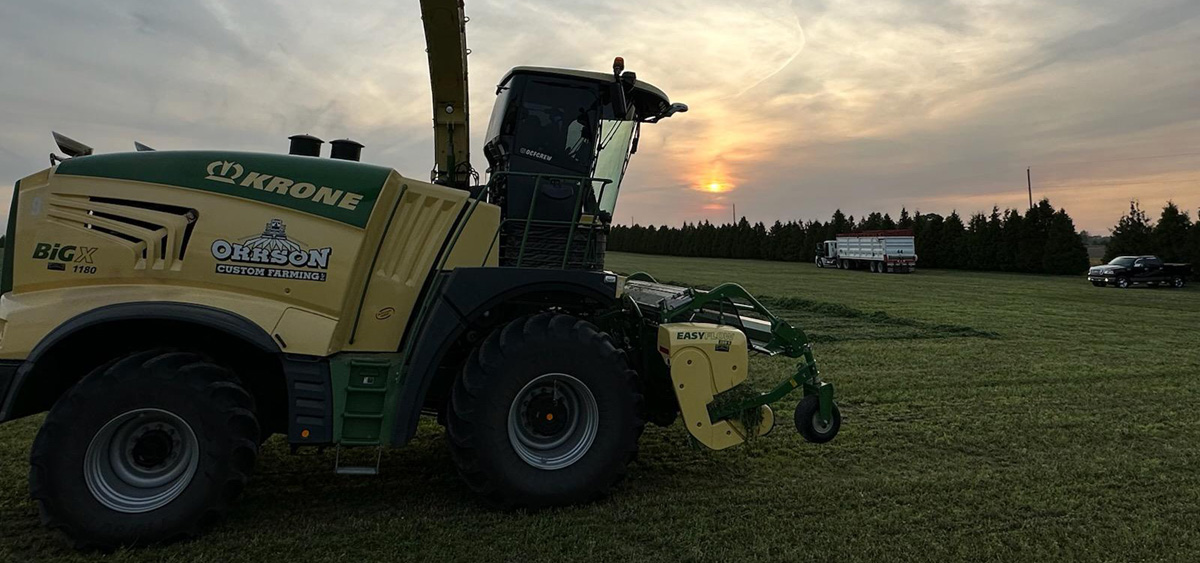 The custom farming enterprise began in 1946 when Clayton Orr, and a friend, Leonard Schnell, started doing custom harvesting for nearby farmers using a one-row, pull-type chopper. Clayton's son, Jim, was the second generation to do custom work along with working on the family farm. When his son, Jon, and wife, Melissa, joined the business in 1997, they expanded their coverage beyond the local area.